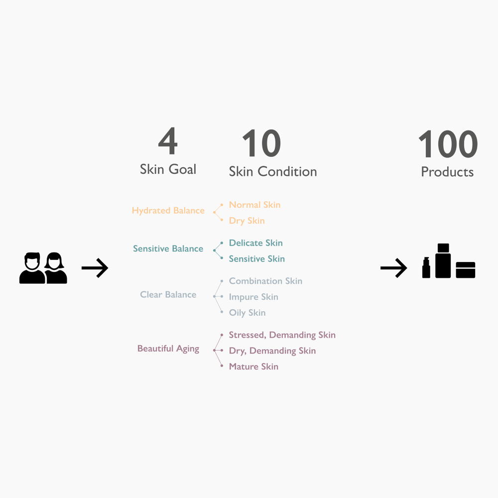 The guide provides maximum flexibility making it possible to quickly and easily find products that are ideal for a specific care goal or skin condition.